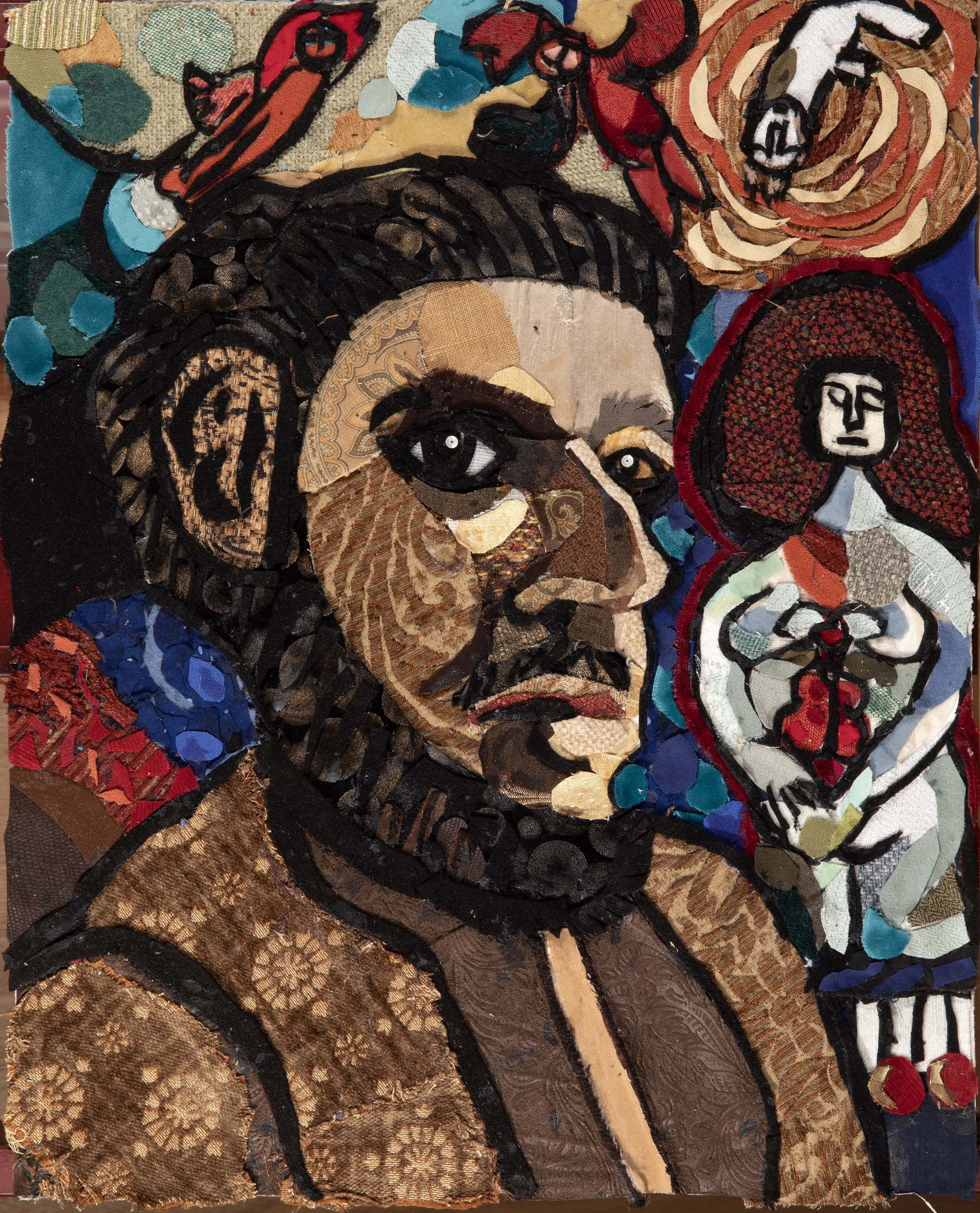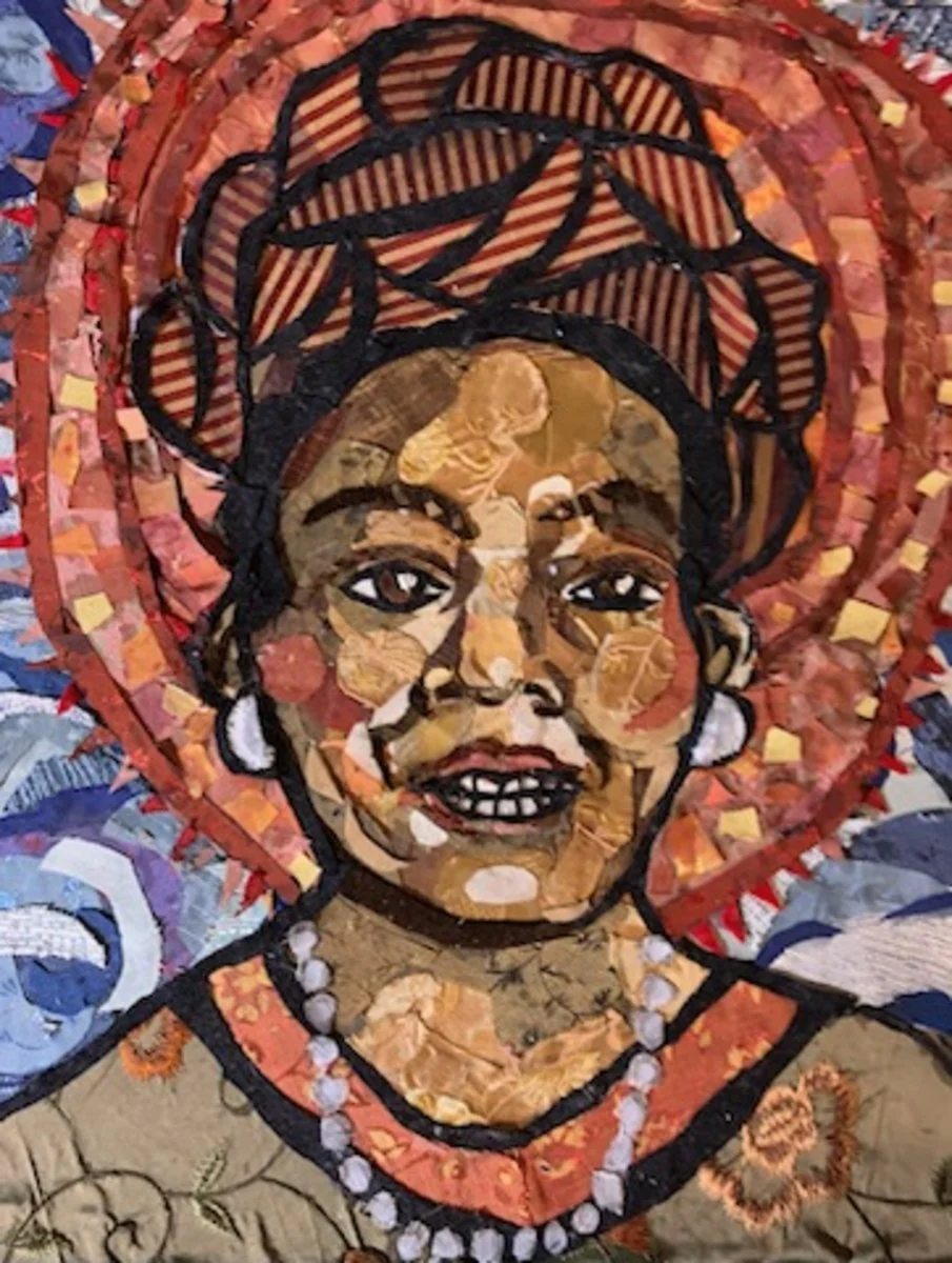 Each portrait is constructed with layered textiles, drawing inspiration from African American quilting traditions and the collage techniques of Romare Bearden. I apply scraps of fabric like strokes of paint—building expressive, painterly images from a distance and intricate, intimate stories up close.
