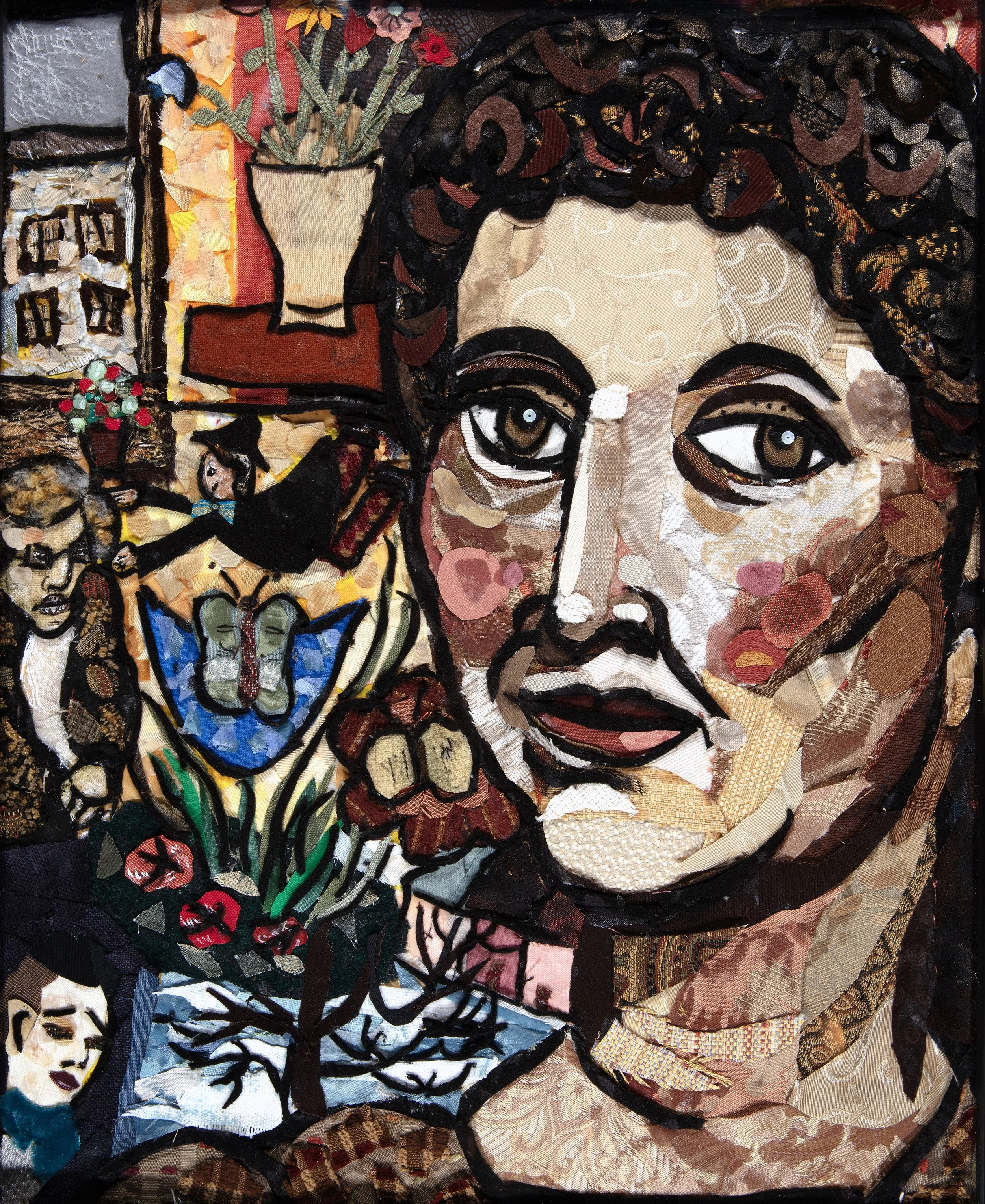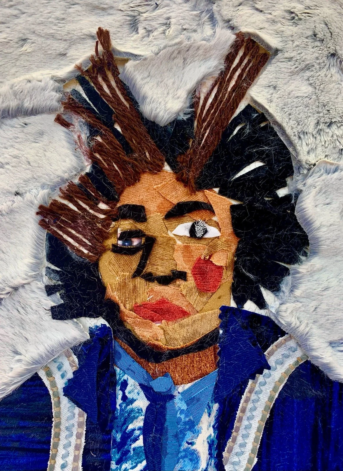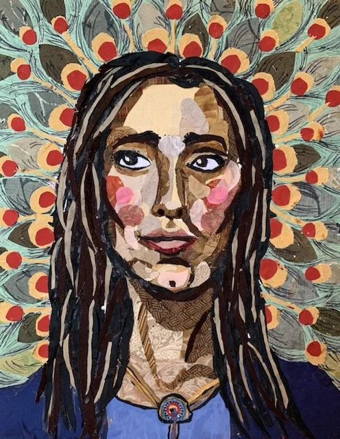 The Artist series is a collection of textile assemblage portraits I created to honor individuals who have had a meaningful impact on my artistic journey. In each piece, I choose visual artists, musicians, writers, filmmakers, and actors who have influenced my life and creative path. These portraits are constructed with fabric and textiles, carefully arranged and glued onto watercolor paper. The background space features images, colors, and forms that directly reference each subject’s work and history, creating a layered tribute to their legacy.